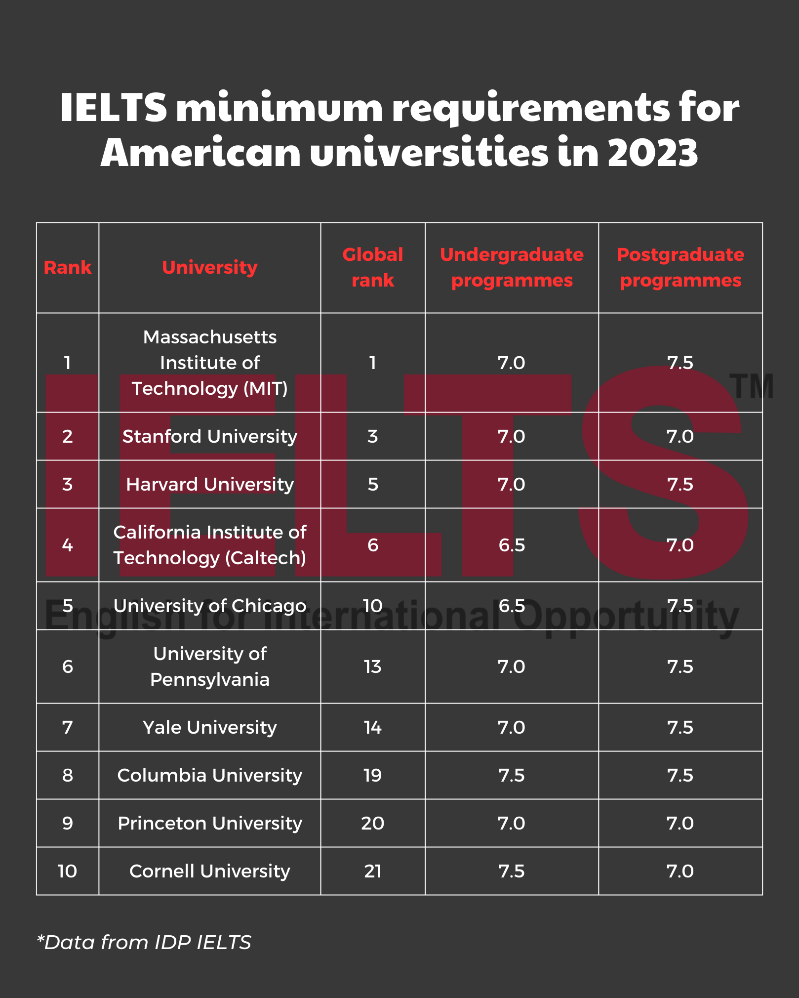 2. IELTS scores accepted get higher